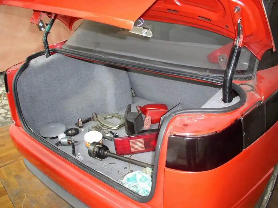 Под вторым чехлом, который гости музея начали поднимать со стороны багажника, стоял красный автомобиль, задние фонари которого напоминали Saab 9000. Расчехляя середину салона, они обнаружили «что-то не то», а когда брезент был свернут окончательно, застыли от изумления — настолько непривычно выглядела представшая перед их глазами машина.