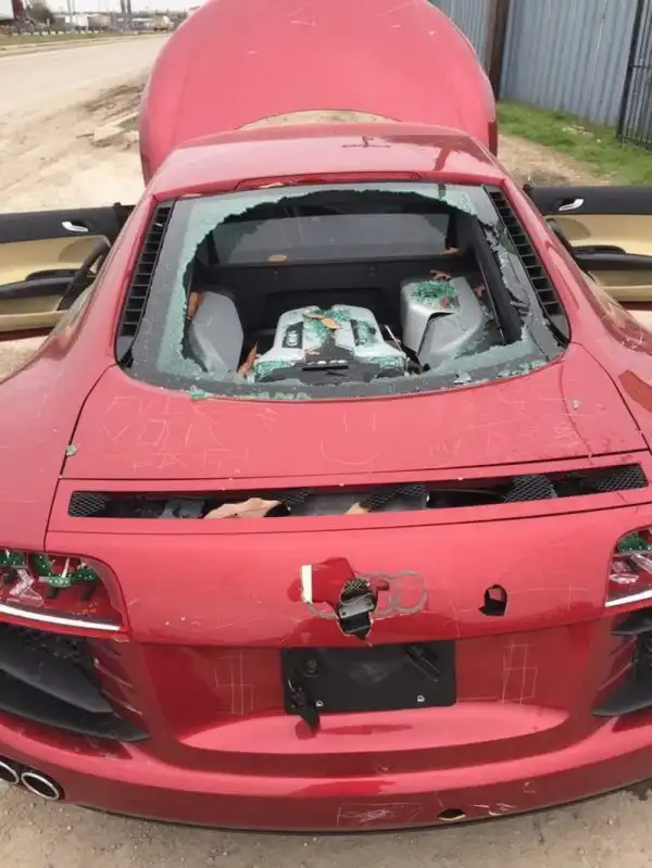 В социальных сетях появились фотографии очень сильно поврежденной Audi R8. Сообщается, что ущерб автомобилю нанесла не ужасная автокатастрофа или сильный шторм, а просто разозлившаяся жена мужа-изменника.