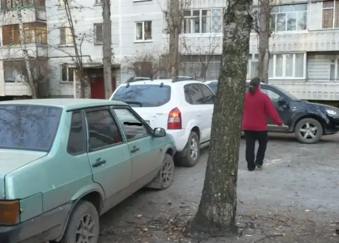 Места для парковки во дворе многоэтажных домов давно уже стали больной темой для большинства автомобилистов, а потому на этой почве происходит немало инцидентов. Один такой инцидент случился, когда водитель белого кроссовера занял место, которое кто-то другой считал своим, а потому этот кто-то решил наказать обидчика.