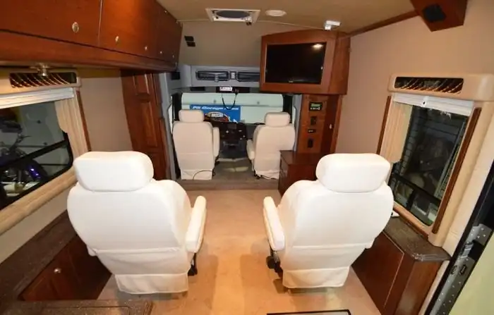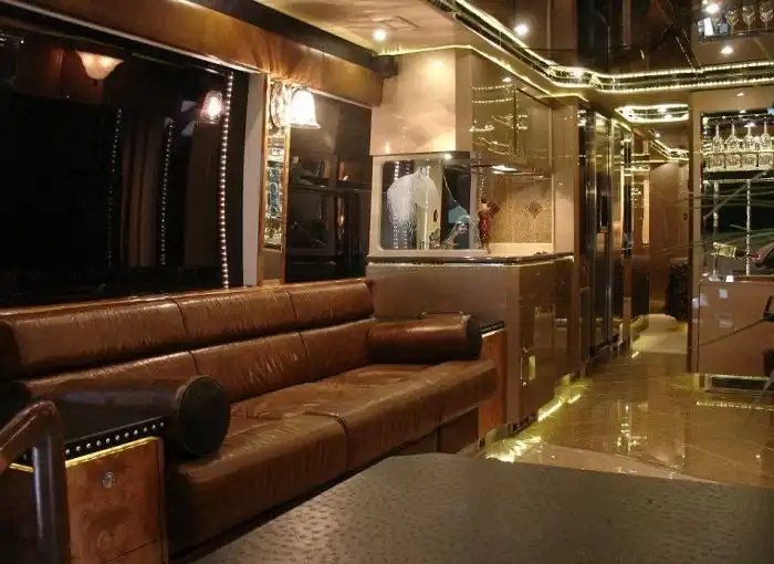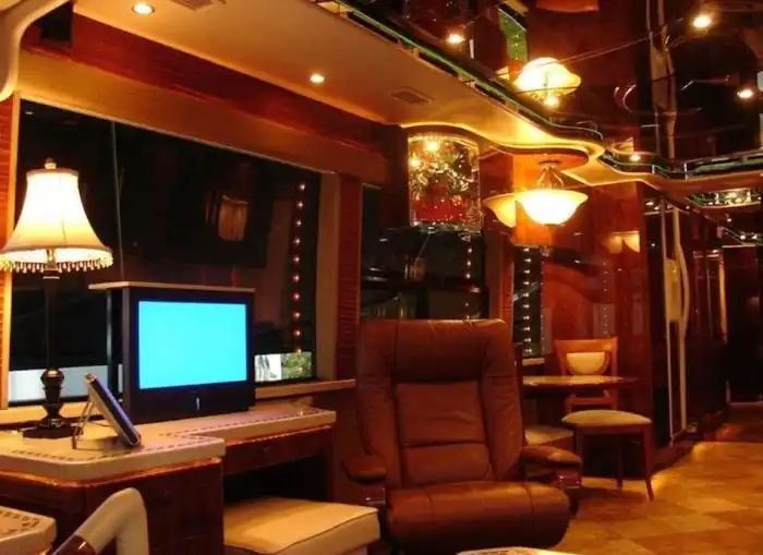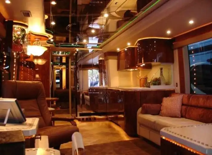 Внутреннее убранство дома на колесах оформляется в соответствии с пожеланиями заказчика. Внутри такого жилья обстановка лучше, чем в дорогих номерах отеля, который становиться совершенно ненужным, если вы имеете подобный автобус.
