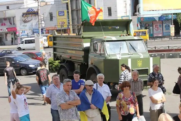 63-летний житель Кривого Рога, Украина, Валерий Крыжов решил помочь украинской армии, воюющей с вооруженными силами республик ДНР и ЛНР, и подготовил для войны самосвал МАЗ-5549. Для того чтобы купить грузовик, пожилой мужчина продал свою 3-комнатную квартиру. Закончив все работы над бронированным автомобилем, украинский патриот в сентябре уехал на нем добровольцем в зону боевых действий.