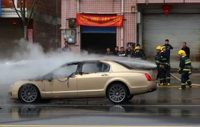 Состоятельный китаец, купивший за 640 000 долларов роскошный седан Bentley Continental Flying Spur, как и многие обычные люди стал жертвой страховщиков. Ежегодный страховой платеж в размере 8 000 долларов не помог владельцу авто получить от страховой компании компенсацию за автомобиль, который загорелся прямо во время движения. Самопроизвольное возгорание страховщики признали не страховым случаем.