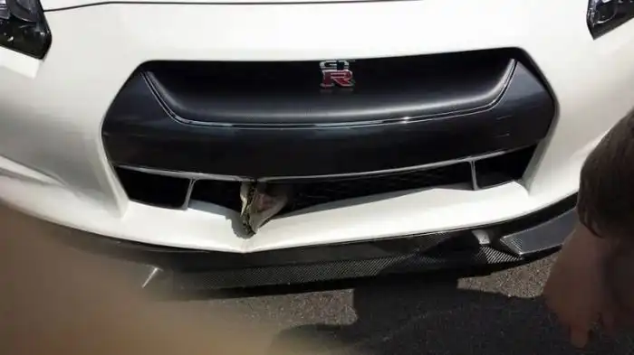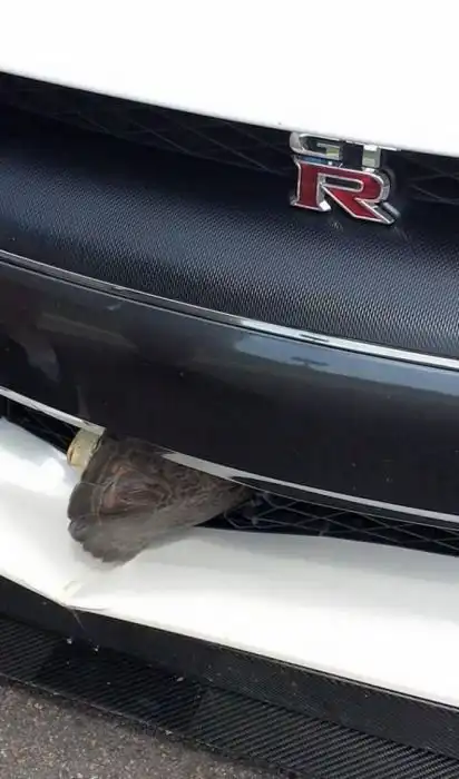Водитель спортивного автомобиля марки Nissan обратился к автомеханикам после столкновения с… черепахой. Сам владелец спорткара утверждает, что ехал он не очень быстро, однако, как тогда черепаха застряла в переднем бампере авто не понятно. К счастью, животное удалось извлечь из машины и отпустить на волю, благодаря своему прочному панцирю оно осталось совершенно невредимым.
