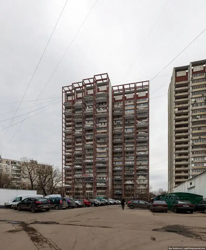 Система, которую было решено для начала опробовать на жилом доме советской серии И-700А, сочетает в себе лучшие качества лифтовой и карусельной парковок башенного типа. Дома такой серии самые популярные в Москве, так что выбор тут не случаен. Это опытный образец, но он уже работает в районе Печатники. Хозяева автомобилей довольны. Теперь каждый автовладелец получил возможность ставить машину под своим окном!