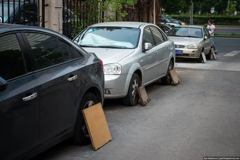 В Китае многие водители во время парковки прикрывают колеса на своей машине куском фанеры или старой дверцей от шкафа. Зачем они это делают?