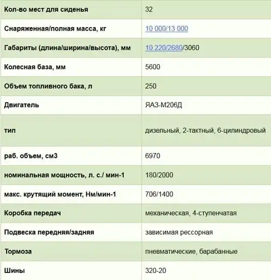 Двигатель при 2000 об/мин развивал 180-сильную мощность. Вес автобуса в снаряженном состоянии достигал 10 тонн. Наибольшая разрешённая скорость составляла 95 км/час, но разогнаться автобус мог и до 111 км/ч.