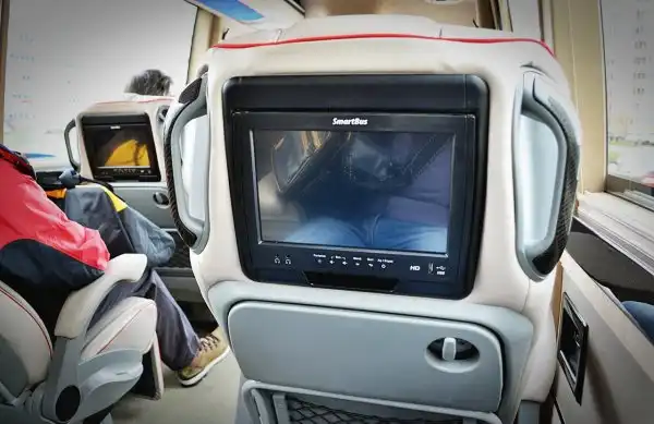 Расстояния между креслами огромное, сами кресла как массажные — проваливаешься и отдыхаешь. Мониторчики с ЮСБ входом как в самолете. Правда поюзать плотно не получилось.