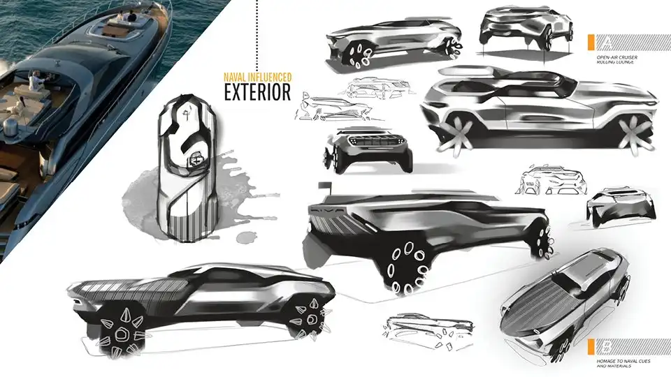 По замыслу автора, Бена Завалы из Цинциннати, Riva Prodezza способна перевозить в своих кают-компаниях до семи человек единовременно, причем передний отсек представляет собой открытую нишу, тем самым затрудняя обзорность для водителя, сидящего позади.