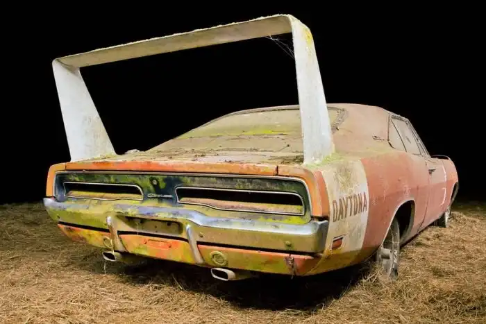 Редкий масл-кар Dodge Charger Daytona 1969 года выпуска, простоявший несколько десятилетий в сарае в городе Гленвуд, штат Алабама, США, будет продан на аукционе. Автомобиль находится в крайне плачевном состоянии, но полностью укомплектован оригинальными деталями, что в сочетании с его эксклюзивностью позволит владельцам получить за него порядка 200 000 долларов. Столь высокая стоимость объясняется тем, что всего было выпущено лишь 560 подобных машин, из которых лишь 400 сохранились до наших дней. Купе с пробегом в 33 000 км имеет 7,2-литровый 375-сильный двигатель V8 Magnum и 3-ступенчатую автоматическую коробку передач, однако, для того, чтобы привести его в надлежащее состояние необходимо потратить кучу денег и времени, что совсем не останавливает коллекционеров, собирающихся купить данное авто на аукционе.