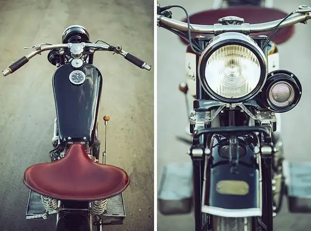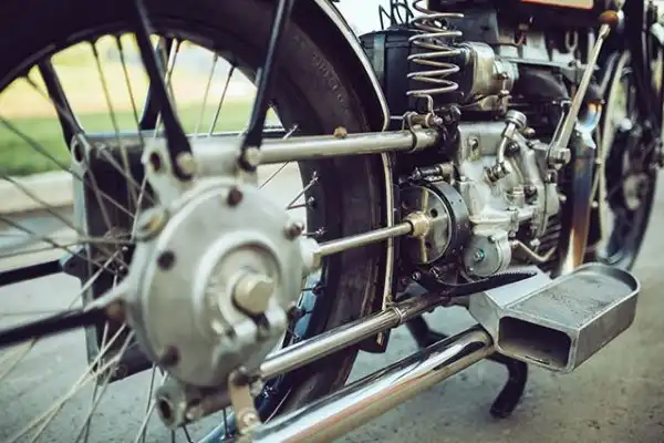 Непосредственно к двигателю крепилась трехступенчатая коробка передач с ручным переключением, многодисковым сцеплением, кик-стартером и трансмиссионным тормозом, действовавшим от ножной педали. Весь силовой агрегат являлся основой ходовой части: сверху на головку цилиндра «надевалась» кованая ферма с рулевой колонкой, а сзади из картера коробки передач выходили горизонтальные трубы, между которыми крепился картер карданной (точнее, торсионной, поскольку задняя подвеска была жесткой и карданные шарниры не применялись) главной передачи.
