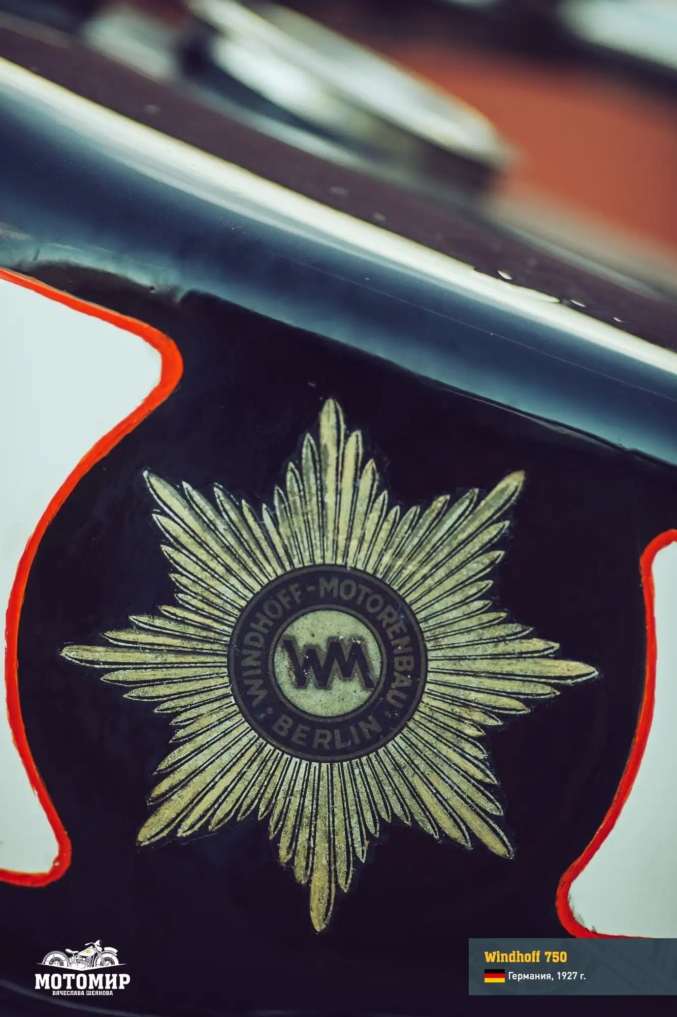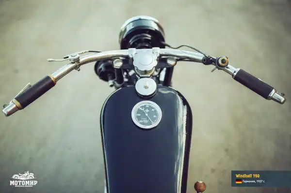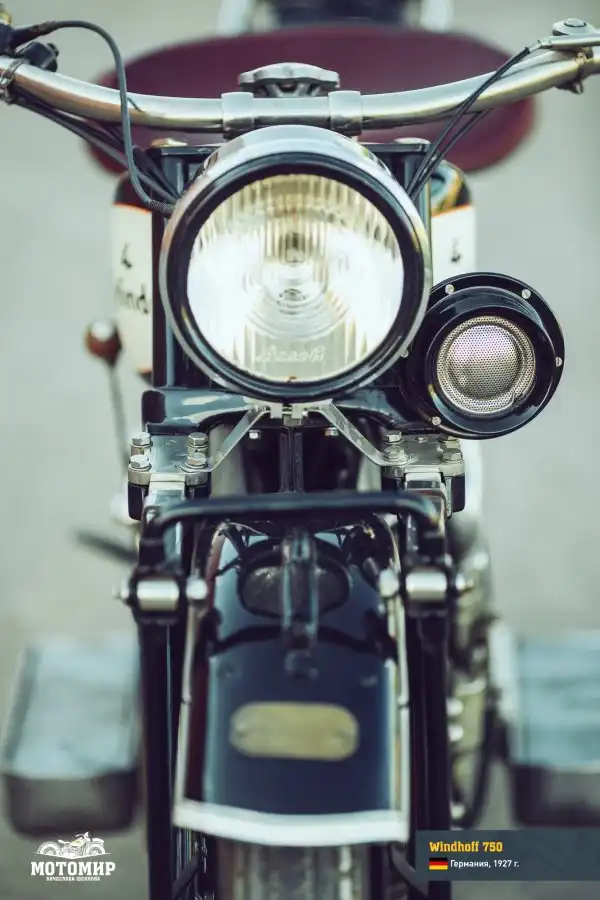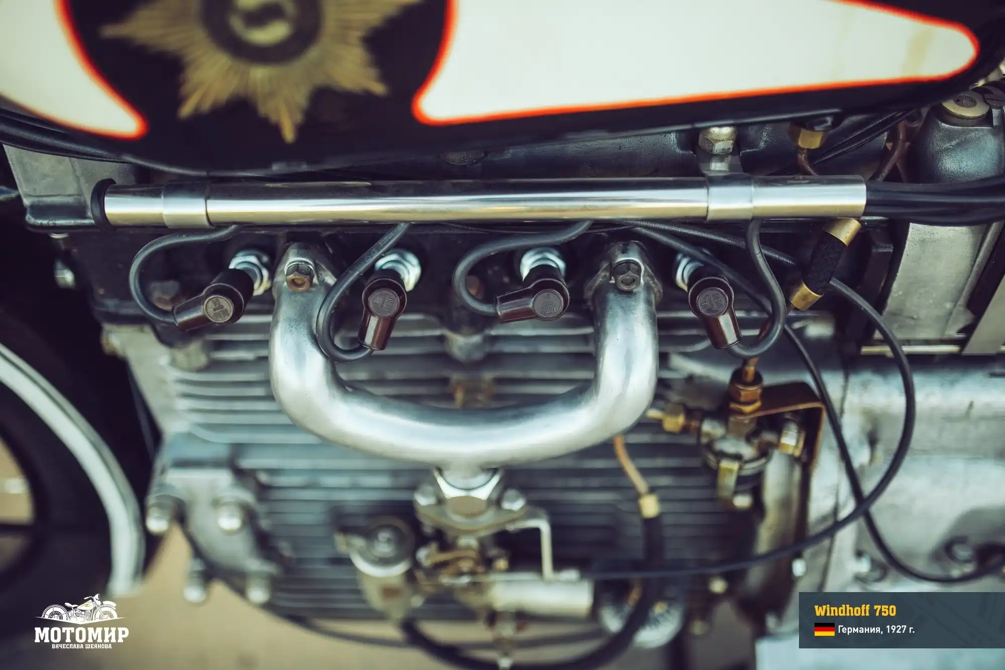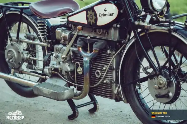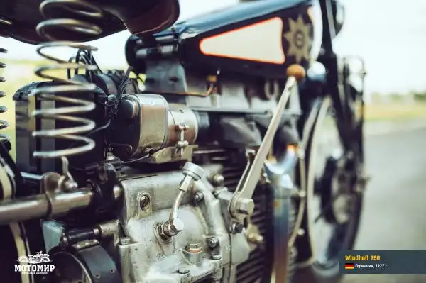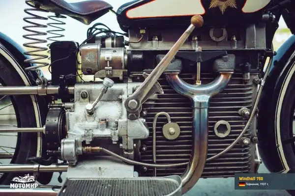 Технологичный старинный мотоцикл Windhoff 750 1927г.