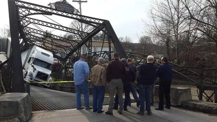 23-летняя американка Мэри Ламбайт разрушила старый металлический мост в городе Паоли, штат Индиана, заехав на него тяжелой фурой, водителем которой она являлась. Девушка загрузила грузовик Volvo 2015 Semi Truck минеральной водой и должна была развести ее по магазинам, однако, она не сумела развернуться на небольшом перекрестке у моста. Тогда она решила проехать по мосту, но не смогла перевести вес в фунтах в тонны, а допустимая масса, кстати говоря, была превышена в 5 раз. 30-тонная фура сломала опорные балки и сама застряла в металлической конструкции. Теперь Мэри придется не только оплатить штрафы за нарушение ПДД, но и возместить ущерб, нанесенный городу.