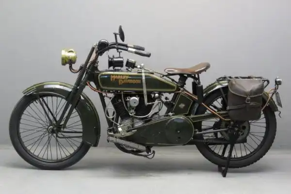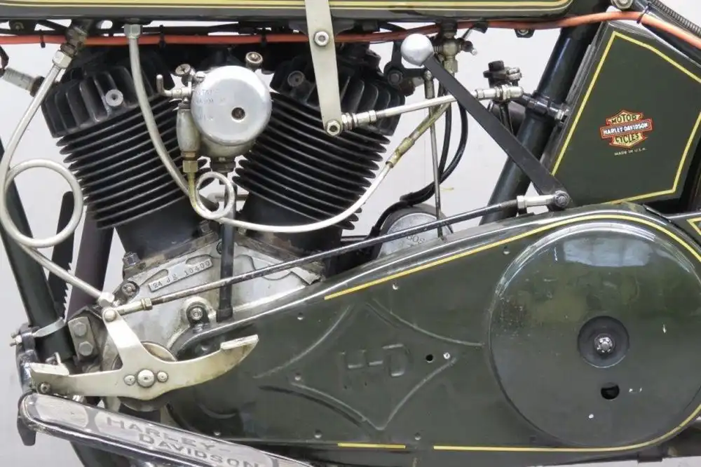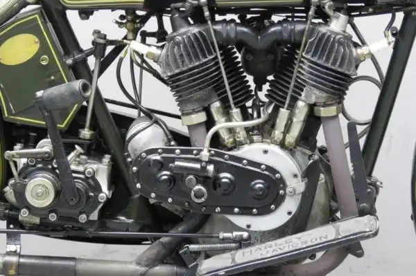 Компании Harley-Davidson потребовалось приблизительно 12 лет, чтобы разработать V-образный 45-градусный двигатель на базе 1-цилиндрового 3-сильного агрегата. 2-цилиндровый мотор соединялся с 3-скоростной коробкой скоростей, и первые модели начали продавать в 1915 году.
