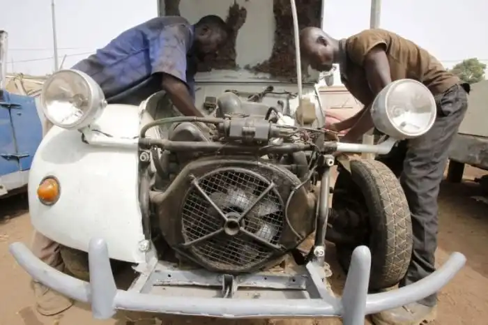 Перед вами обычная автомастерская в Кот-д’Ивуаре. Работать здесь приходится с хламом, который непонятно как, но еще ездит. Всем машинам давно уже пора на свалку, однако, местные умельцы поддерживают их работоспособность всеми возможными способами.