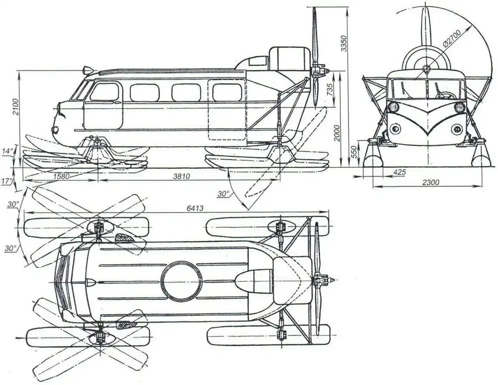 Это нашло отражение даже в названии — аэросани получили индекс Ка-30, то есть именовались по тому же принципу, что и вертолеты, разрабатываемые в ОКБ. Поэтому неверным является распространенное предположение о том, что кузов К-30 якобы был заимствован у микроавтобуса "РАФ". Да, он был сделан похожим на многие фургоны тех лет, но изготавливался по совершенно иной технологии — не из сварных стальных панелей, а из листового склепанного дюралюминия, как фюзеляжи самолетов и вертолетов.