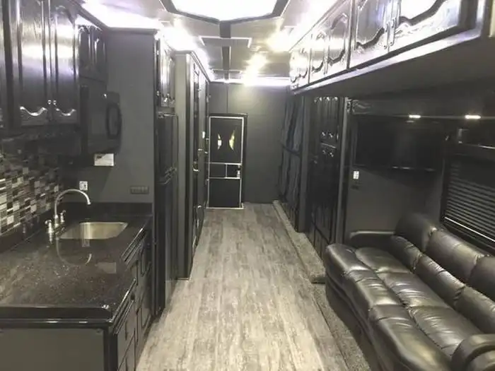 Перед вами не простой тягач с прицепом, а целые апартаменты на колесах. Внутри этого транспорта есть все, что необходимо для комфортной жизни. Здесь вы не найдете ничего лишнего, только все самое необходимое, выполненное со вкусом и роскошью.