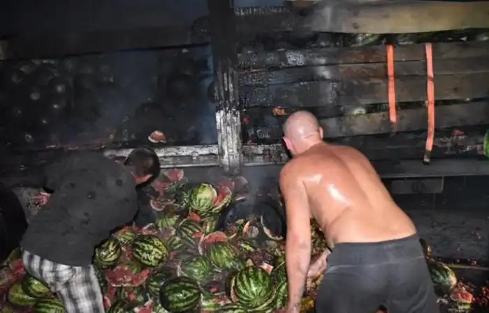Губернатор Херсонской области Андрей Гордеев арбузами тушил горящую фуру