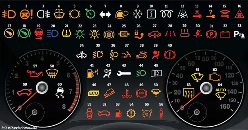 Мы решили избавить вас от этих мучений! В наших инфографиках собраны 64 наиболее распространённых символа приборной панели разных автомобилей.