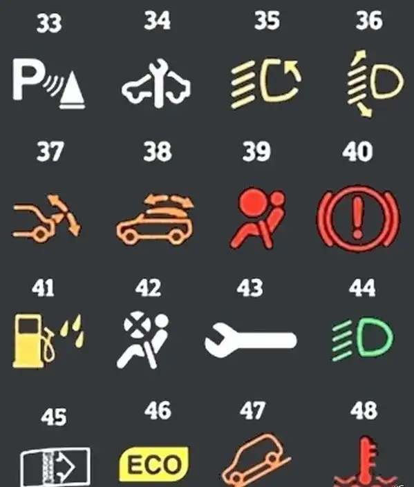 Значения значков на приборной панели автомобиля
