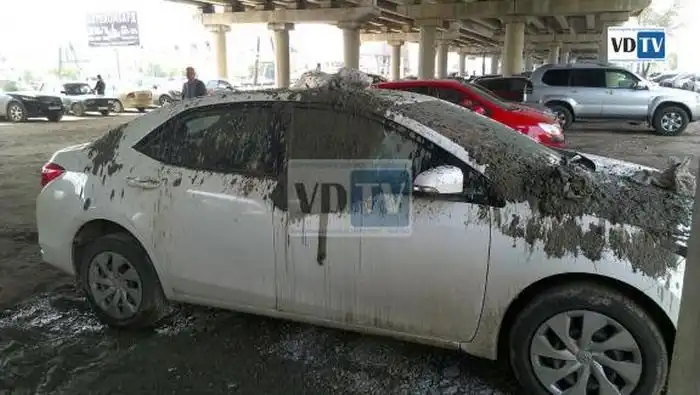 В Волгограде сотрудник прокуратуры, припарковавший свой автомобиль Toyota Corolla, под мостом, на котором проводились ремонтные работы, очень скоро пожалел о своем решении. Во время капитального ремонта моста, бетон оказался на кузове и стеклах автомобиля. Кроме того пострадала еще одна машина, припаркованная рядом. Сообщается, что авто были припаркованы с нарушением ПДД.