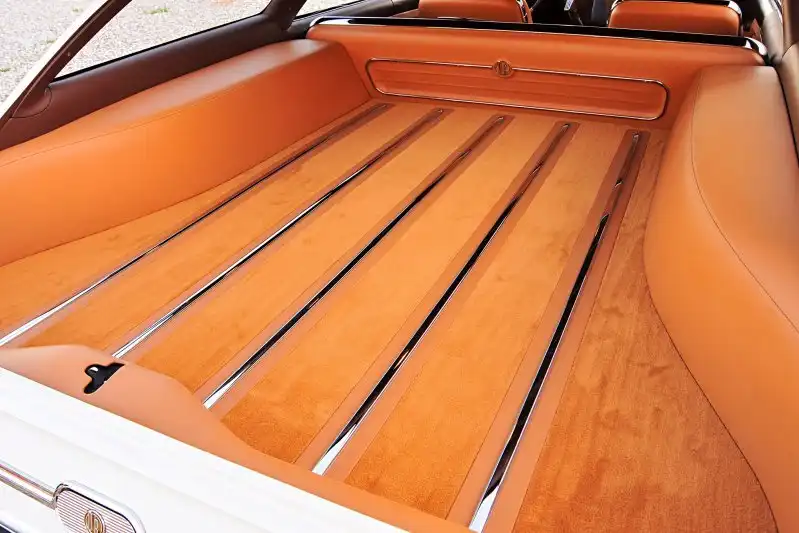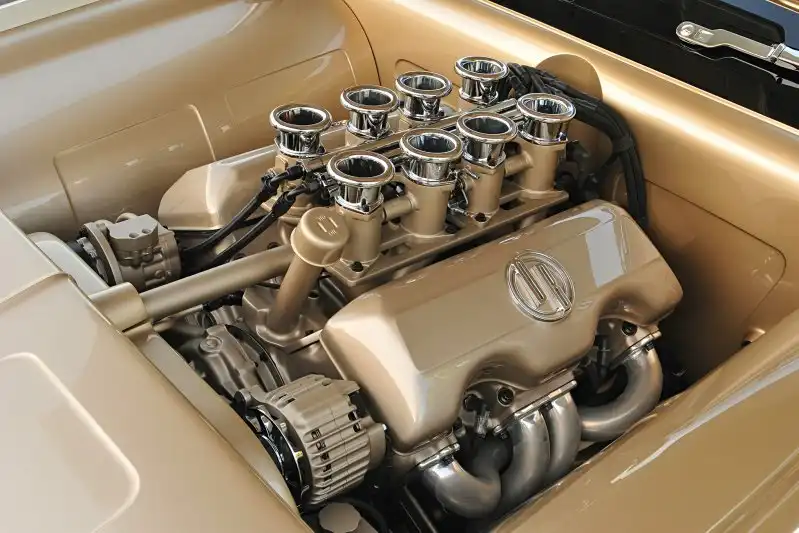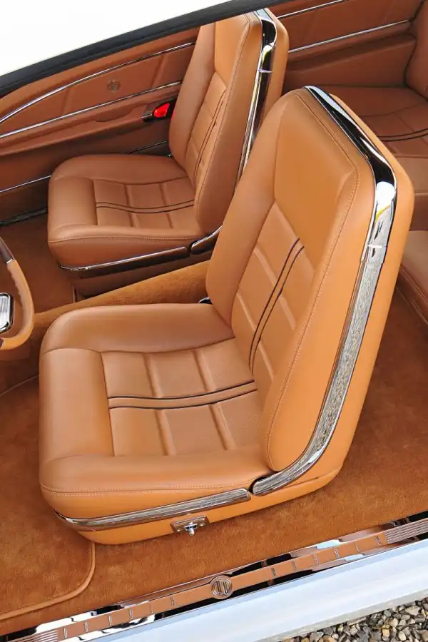 Над 6,7-литровым мотором потрудились мастера Carma Performance, а состыкован он с 5-ступенчатой механикой Tremec. А вот над салоном работал Пол Аткинс, перетянувший все его элементы в ткань и кожу светло-коричневых оттенков.