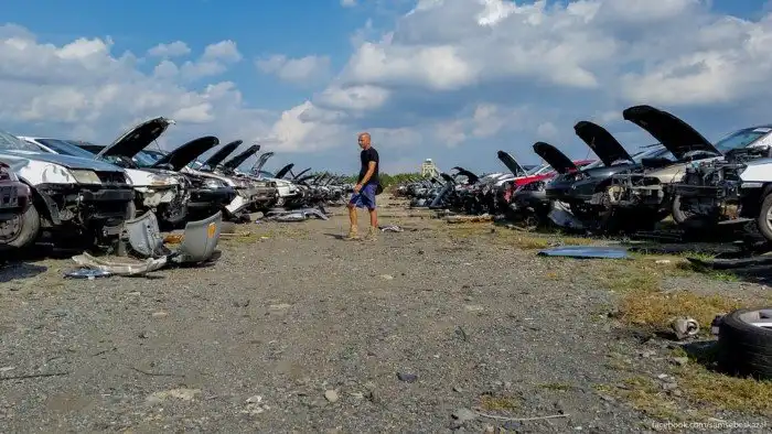 Машины на территории отсортированы по группам: американские, иномарки, внедорожники, минивэны. Но все это ничуть не облегчает поиск. Даже зная номер ряда найти машину труднее, чем могилу на каком-нибудь кладбище. Сама разборка вполне себе тоже кладбище. Только автомобильное.