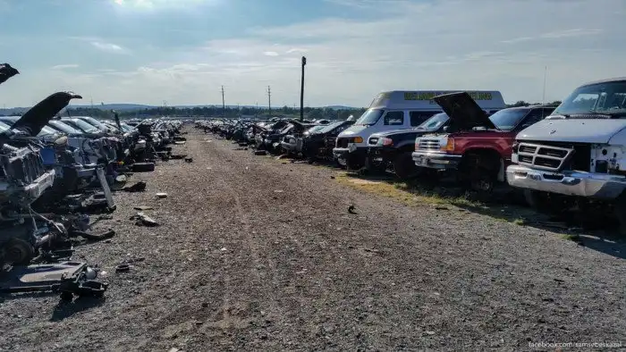 В комментариях к одному из моих старых автомобильных постом мне написали, что в окрестностях Нью-Йорка существуют автомобильные разборки самообслуживания. Приезжаешь туда с инструментом и сам откручиваешь нужную тебе деталь. Возни, вроде как, много, но зато запчасти стоят очень дешево. Как оказалось, такие разборки действительно есть, но, к сожалению, находятся они довольно далеко от Нью-Йорка. Пока искал что-то поближе, то наткнулся на информацию о самой большой автомобильной разборке в мире, которая расположена рядом с городком Вест-Хазлтон в Пенсильвании, где на огромном поле, размером со взлетное, стоит несколько тысяч машин.