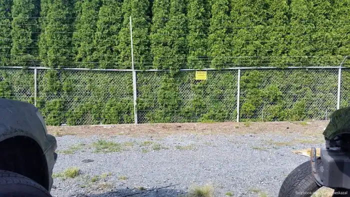 Таким забором они отделяют зону переработки металлолома (слева) от самой разборки (справа).