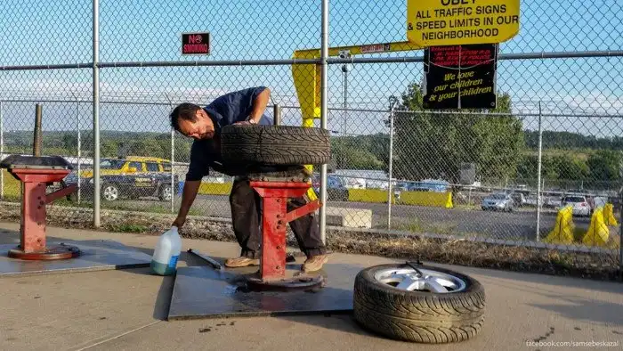 На многих европейских машинах отличная резина с очень маленьким пробегом. На бруклинских шиномонтажках за лысеющее колесо просят 25 долларов. Здесь можно купить почти новое за $20. А еще очень много вольвовских и саабовских дисков в отличном состоянии. Уже немножечко жалею, что Вольву продал :) Запчастей на нее тут просто море.
