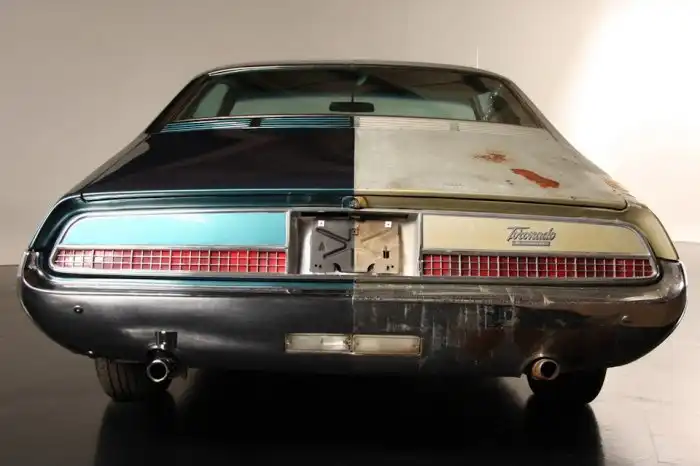 А вот компания Precision Restorations из города Сент-Луис (штат Миссури) решила пойти весьма необычным путем и выкатила на суд публики очень оригинальный проект "половинчатой" реставрации люксового купе Oldsmobile Toronado образца 1967 года.
