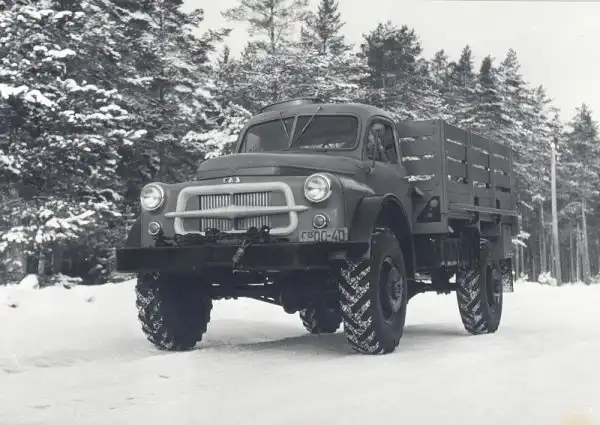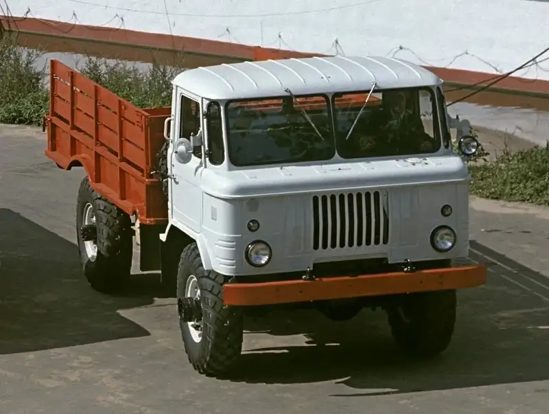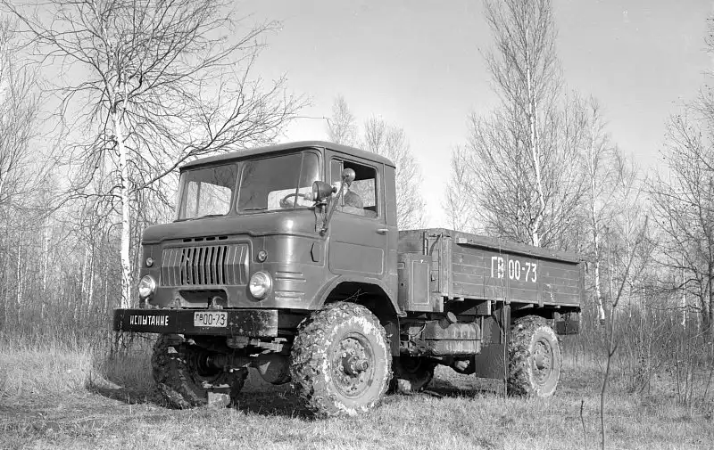 Опытный полноприводный грузовик, первоначально получивший индекс ГАЗ-66, 1956 год. В этом автомобиле постарались искоренить главный недостаток серийного ГАЗ-63 — малую поперечную устойчивость из-за слишком узкой колеи.