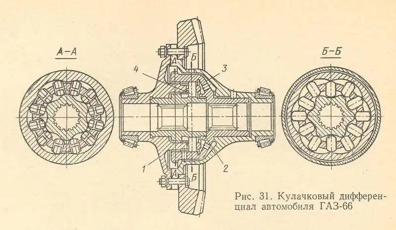 Самоблокирующийся кулачковый дифференциал ГАЗ-66 с двумя рядами сухарей-сателлитов.
