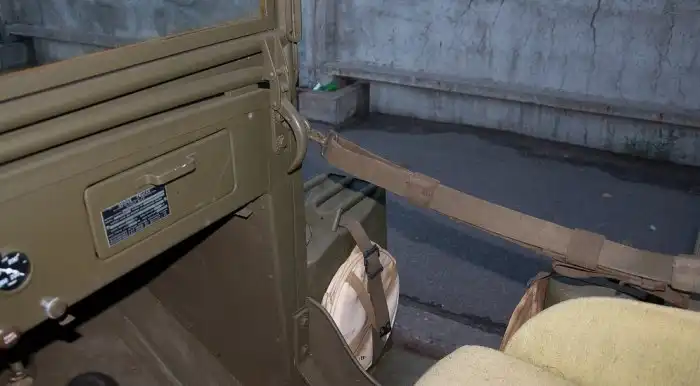 Вместо «запаски» на пороге установлены две канистры, одна для воды, другая – для горючего. Так было задумано американцами, но в нашем случае обе канистры используются для перевозки бензина. Триста километров, помните? К ним крепятся ремнями два брезентовых ведра.