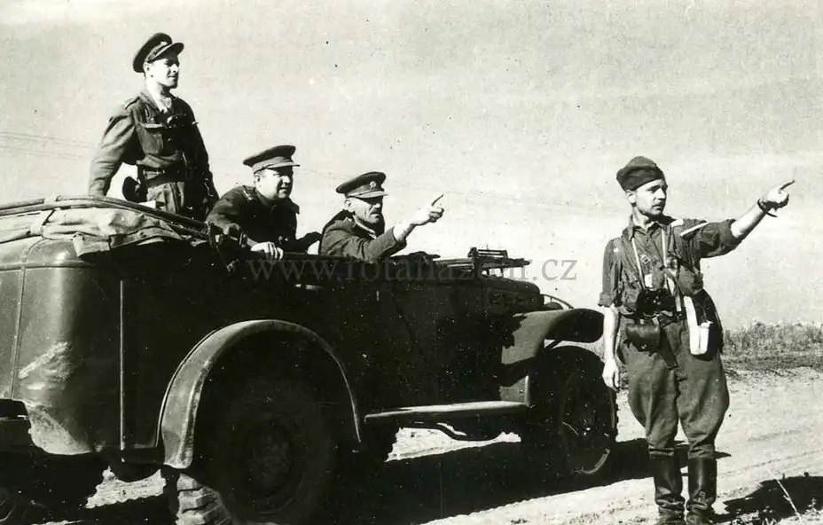 Автомобиль командира 2-й отдельной чехословацкой воздушно-десантной бригады полковника В. Прикрыл. Польша, осень 1944 года
