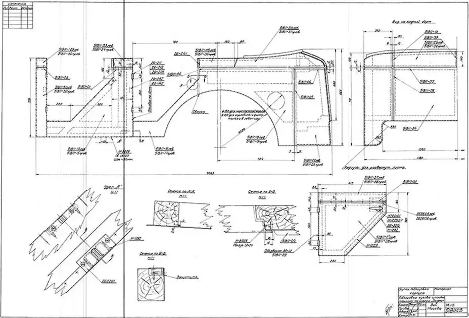 Копия заводского чертежа «Облицовка кузова штабной машины на шасси «Додж». Документ датирован сентябрём 1943 года
