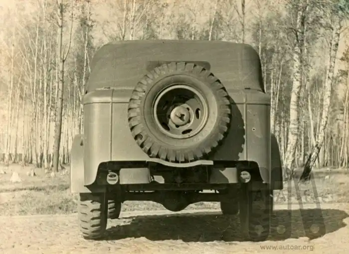 Фотографии автомобиля с кузовом автозавода им.Сталина. Машина принадлежит второй промышленной серии c запаской, установленной сзади, сентябрь 1943 года