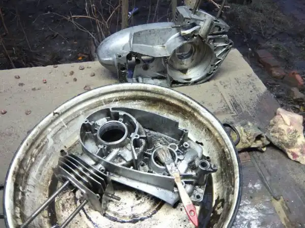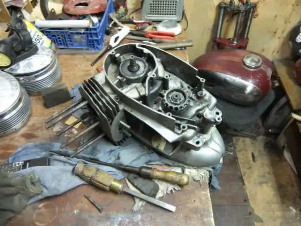 Дело было зимой, познакомили меня с одним интересным человеком зовут его Гена, занимается он поиском и перепродажей запчастей мотоциклов Ява, к нему в гости сидим разговариваем о мотоциклах, рыбалке… в общем зимой я ему позвонил со словами «… нужно откапиталить двигатель Явы Старушки», на что он мне ответил «… не проблема, привози, займёмся». Привёз двигатель обсудили цену, попутно напросился к нему наблюдать за всем этим и помогать. Наступили теплые деньки и мы раскололи мой двигатель, потом я привёз ещё один, его мы тоже подвергли той же операции.