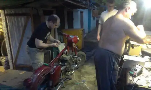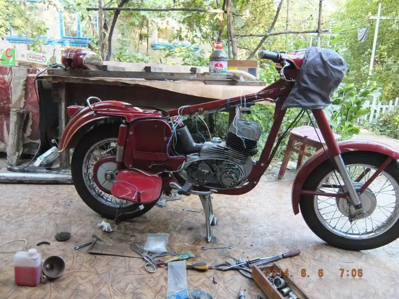 За эти два дня узнал, что рядом со мной живет бывший владелец мотоциклов Ява, вечером собрался консилиум, и мы решили завести это чудо Чешского мото-прома. Долго мы пытались его завести, разобрались во всей электрической цепи, но не как не удавалось… решили выпить чаю и взглянуть на это всё со свежей головой. Приободрившись после чая, мы заново всё проверили, почистили свечи, выставили зажигание и начали дергать дрынь-палку (кикстартер), через пару минут Старушка дала первые вспышки… промучились мы ещё около часа, пар шел от голов участвующих, кто то стоял с многозначительным видом и размышлял о высоком, кто то пытался вычисли проблему, а кто-то дергал дрынь-палку, в конце концов она завелась, и проработала на холостых, пока не закончился бензин… в общем вечер прошел не зря и закончился на позитивной ноте работающего двигателя, счастливые и довольный мы разошлись.