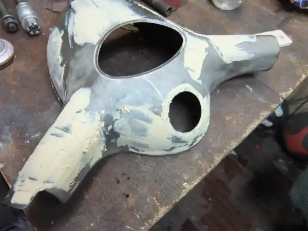 Параллельно всей вышеперечисленной работе я занимался покраской, полировкой металла и сборкой колёс. В нашем городе ни кто не хотел заниматься покраской мелких элементов, или просили очень много денег. Я сразу отмёл мысль красить в какой-нибудь канторе, занялся поиском компрессора и пульта, в итоге был выбран компрессор 220 литров в минуту, с 40 литровым баллоном. Пульт простой со всеми необходимыми регулировками. Так же я приобрёл пистолет для пескоструйки. 60 летняя краска этим пистолетом, отбивалась с большим трудом, и тогда я воспользовался Body 700, в совокупности с пескоструем она давала желаемый результат. Так я мучился с каждым элементом. Потом началась грунтовка и покраска, потом полировка, тут ничего хитрого, необходимо выставит удобный для вас факел, выставить давление чтобы не было шагрени и налить столько краски на поверхность сколько вам нужно.