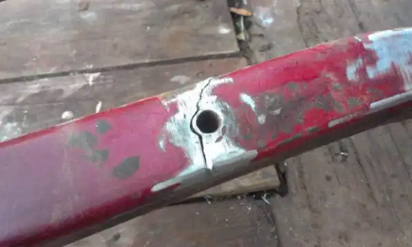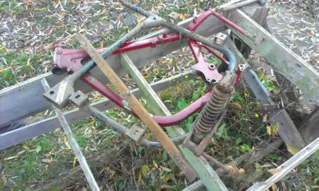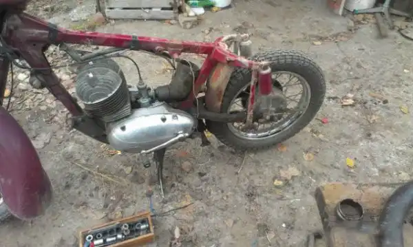Предыдущий владелец использовал этот мотоцикл «и в хвост и в гриву», для поездок на рыбалку. Грязи на нём было немеренно. Разобрав второй мотоцикл я понял, что он ушатан ещё больше, чем первый, перед моими глазами оказалась треснутая и поведённая рама (это было самым большим огорчением за весь процесс восстановления). Делать нечего, нужно править и ремонтировать раму. На это ушло около 7 дней, а точнее вечеров. В итоге всё было сделано, рама выправлена, обварена накладками, зашпаклевана и покрашена. Начало положено.