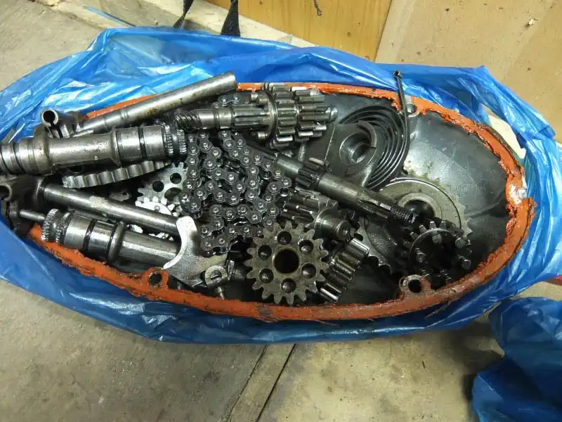 И вот он настал, я приехал к Гене и мы начали, на всё про всё мы потратили около трёх часов, попутно я узнал много секретов и тонкостей сборки конкретно этого двигателя, и торжественно поклялся никому их не раскрывать.(Один я вам раскрою — поршневой палец тютелька в тютельку пролазит в отверстие предназначенное для червячного механизма передающего вращение вторичной оси коробки передач на трос спидометра). Собрали мы двигатель, я был счастлив, оставалось отполировать крышки и можно было использовать. Я забрал двигатель, пока он стоял у меня в мастерской я полировал крышки. Позже началась сборка рамы, и женитьба двигателя с рамой.