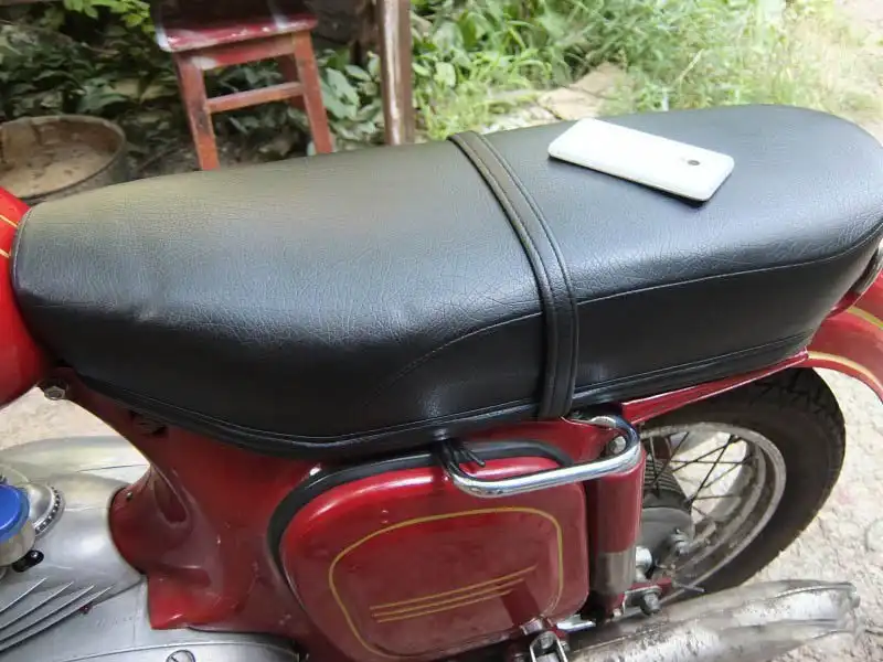 С сиденьем особых проблем не было, благо отлично сохранилась микропорка («поролоновая» основа сиденья) а вот станину (металлическую основу) пришлось ремонтировать. Отремонтировав станину, я созвонился с человеком и отправил всё это добро в Анапу, там дядя Коля должен был обшить мою сидушку по всем канонам Явы. Вообще обшив сиденья Явы спорный вопрос, за много лет было много разных модификаций, некоторый люди утверждают что были канты, некоторые шьют белыми нитками, в общем существует много споров, но все они затихают когда на свет появляется оригинальное сиденье тех времён, все замолкаю и пускают слюни глядя на неё. Дядя Коля в своем арсенале имеет практически все оригинальные сидушки и шьет так как надо. Сиденье обшили, и оно вернулось ко мне. На почту я приехал его забирать сидя на крыле, пока ехал проклинал дороги, копчик мой был в шоке от таких поездок. Так вот, забрал сидушку, установил, сель и поехал, и тут меня ждало самое страшное приключение. В виду того что дерматин был ещё свежим и новым, я немного скользил на нём, давал газу и сползал назад, тормозил соответственно сползал к баку. Представьте себе как вы едите на такой сидушки, примерно 60 км/ч, и тут резко с остановки выворачивает маршрутка(в Ростове маршрутчики делают что хотят, что такое сигнал поворота они наверно вообще не знают, а мотоциклистов за комаров наверное считают) так вот этот упырь решил вывернуть, а тут я, делать нечего, начинаю резко оттормаживаться, соответственно скольжу к баку ииииииии со всего маху пытаюсь лишить его девственности… уууууу, как же больно… приехал домой протёр сидушку, проблема исчезла.