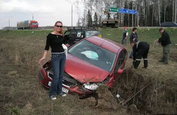 Все мы знаем, какие порой отношения складываются между женщинами и автомобилями. Немало представительниц прекрасного пола «не дружат» с машинами, но все равно садятся за руль. После этого мы с вами можем наблюдать появление подобных снимков.