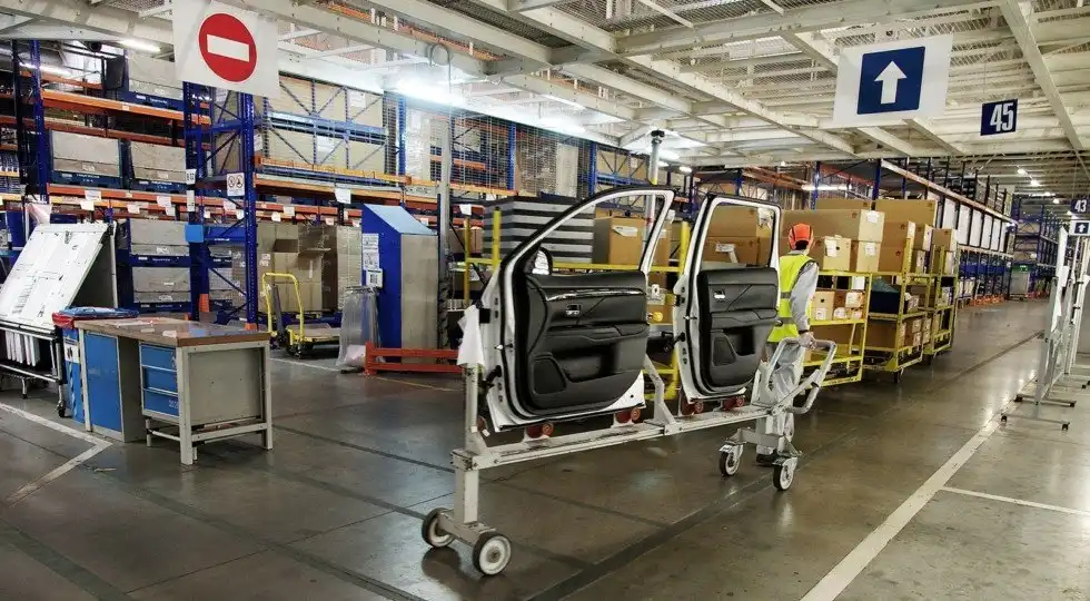 Ну а выглядит завод довольно-таки обычно: просто современное промышленное здание, огромный плоский параллелепипед практически без окон. Главное – внутри… Впрочем, среди автомобильных журналистов не зря ходит фраза: «кто видел один современный автозавод, видел их все». В какой-то мере это действительно так и есть. Любой автозавод похож на реку. Есть главное русло – сборочный конвейер. Есть притоки – отдельные участки, где собираются те или иные узлы. Но в любом случае все начинается с логистики.