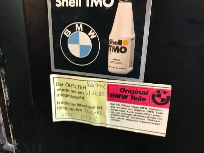 Сервисная наклейка с информацией о замене масла в 1982-м году