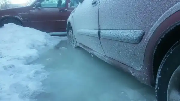 Походу Ниссан встрял до весны, тк примерз он аж по лыжу, до днища поднялся лед.