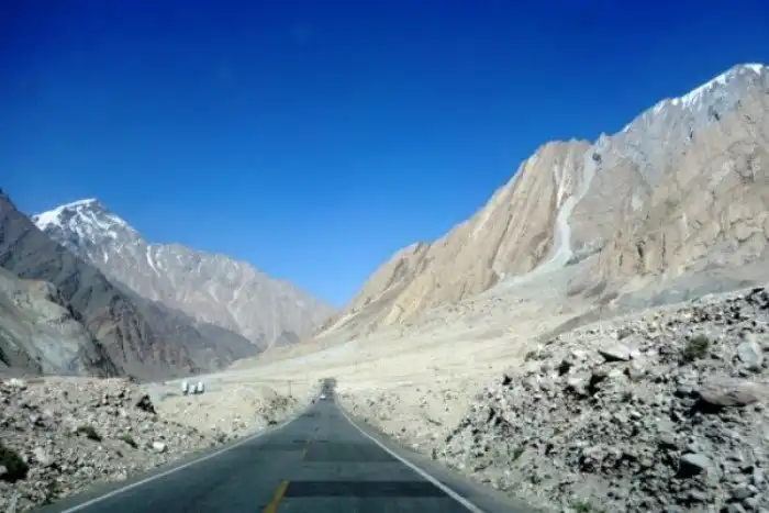 Стратегически важная дорога, соединяющая пакистанский Исламабад с китайским Кашгаром. Львиная доля 1300-километрового шоссе, повторяющего часть Великого шелкового пути, лежит в Пакистане. Асфальта — крайне мало. Зато лавин и оползней хватает. Еще при строительстве (1966-1986 гг.) здесь полегло порядка 1000 рабочих.