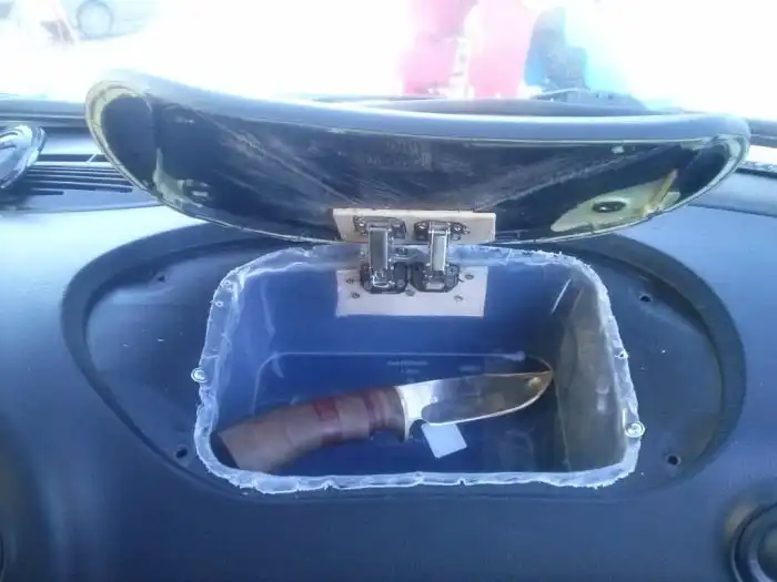 Владелец автомобиля Chevrolet Niva показал довольно простой способ, как своими руками сделать бардачок в приборной панели на месте штатной заглушки. Все что для этого понадобилось - пластиковый контейнер, мебельные петли и немного свободного времени. Для эстетичности осталось только повозиться с обшивкой внутренней части, после чего все будет выглядеть вполне прилично.
