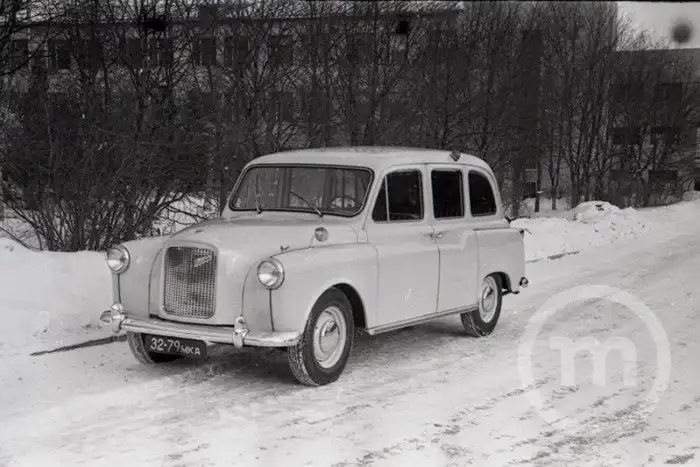 Под пристальное око советских специалистов попало даже знаменитое «Лондонское такси»! Классический Austin FX4 – правда, не в черной, а в нетипичной светлой окраске – «засветился» на пленке в 1968 году. На заднем плане угадывается территория института НАМИ.