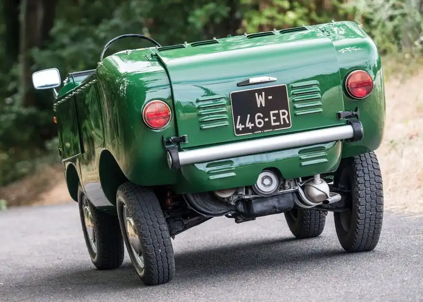 Вес получившегося внедорожника — 550 килограмм. Неудивительно, что передний и задний бампера выполнены в виде поручней — за них вполне можно было вытащить или вытолкать застрявший автомобиль из грязи руками.